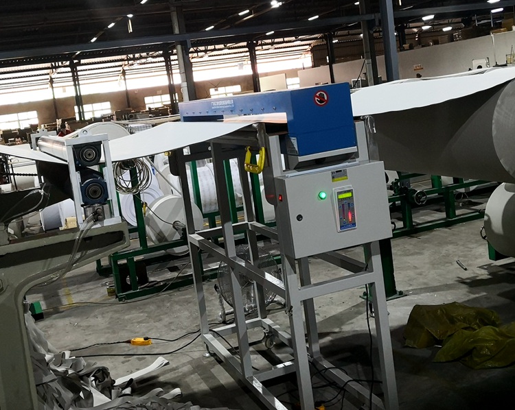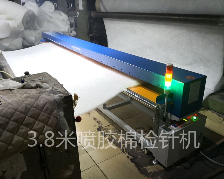 緬甸客戶專業生產羽絨服被,先后采購我公司定制生產的1.8米寬幅檢針機用于檢測其羽絨服被裁片的金屬異物。